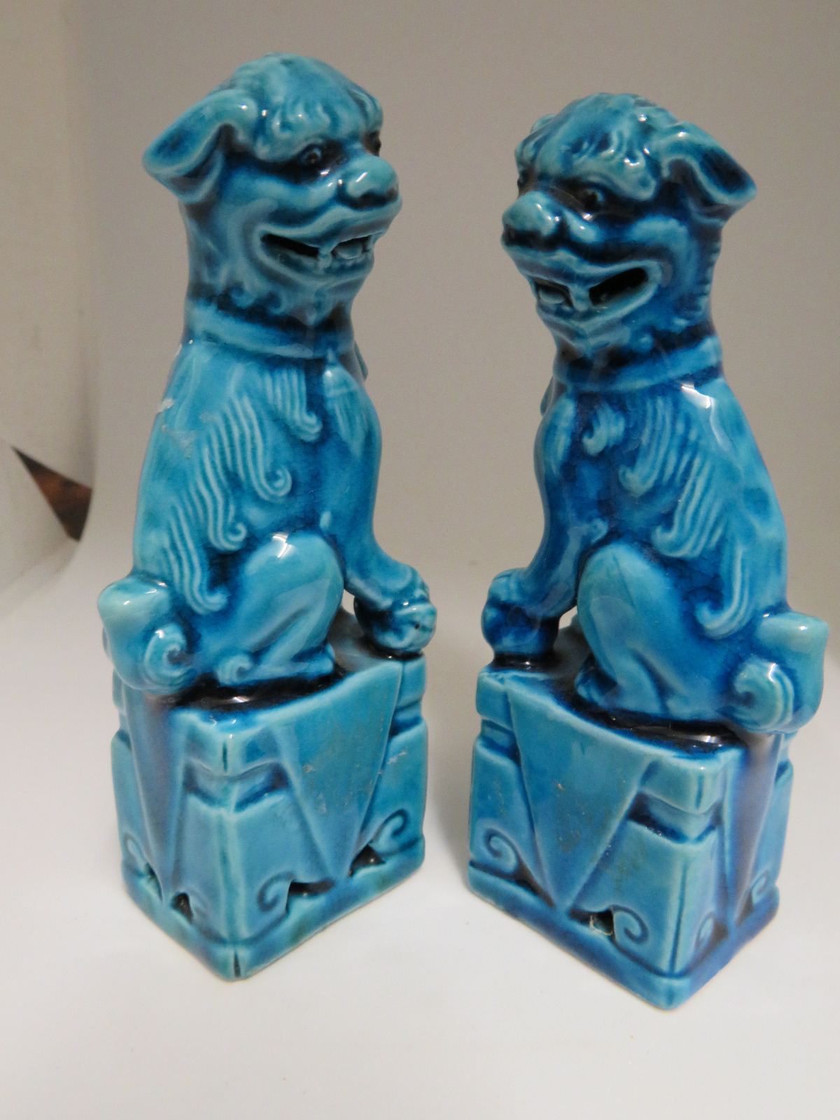 Pair of Chinese Dogs of Foo Turquoise Porcelain