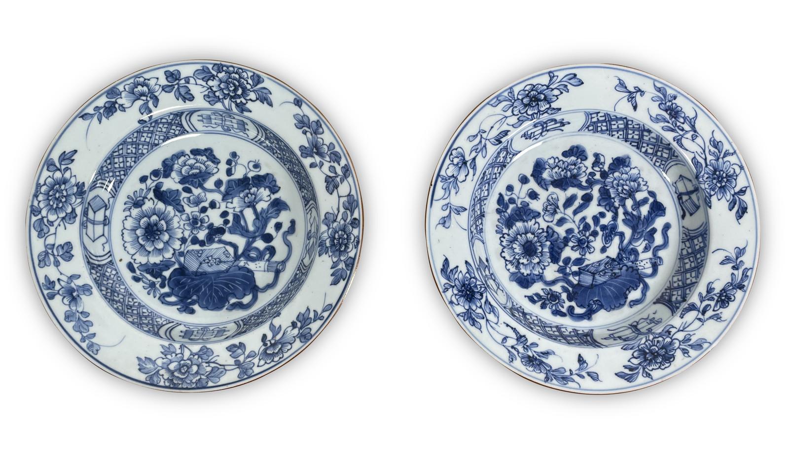Pair of Chinese Export Blue and White Floral Decoration Dishes