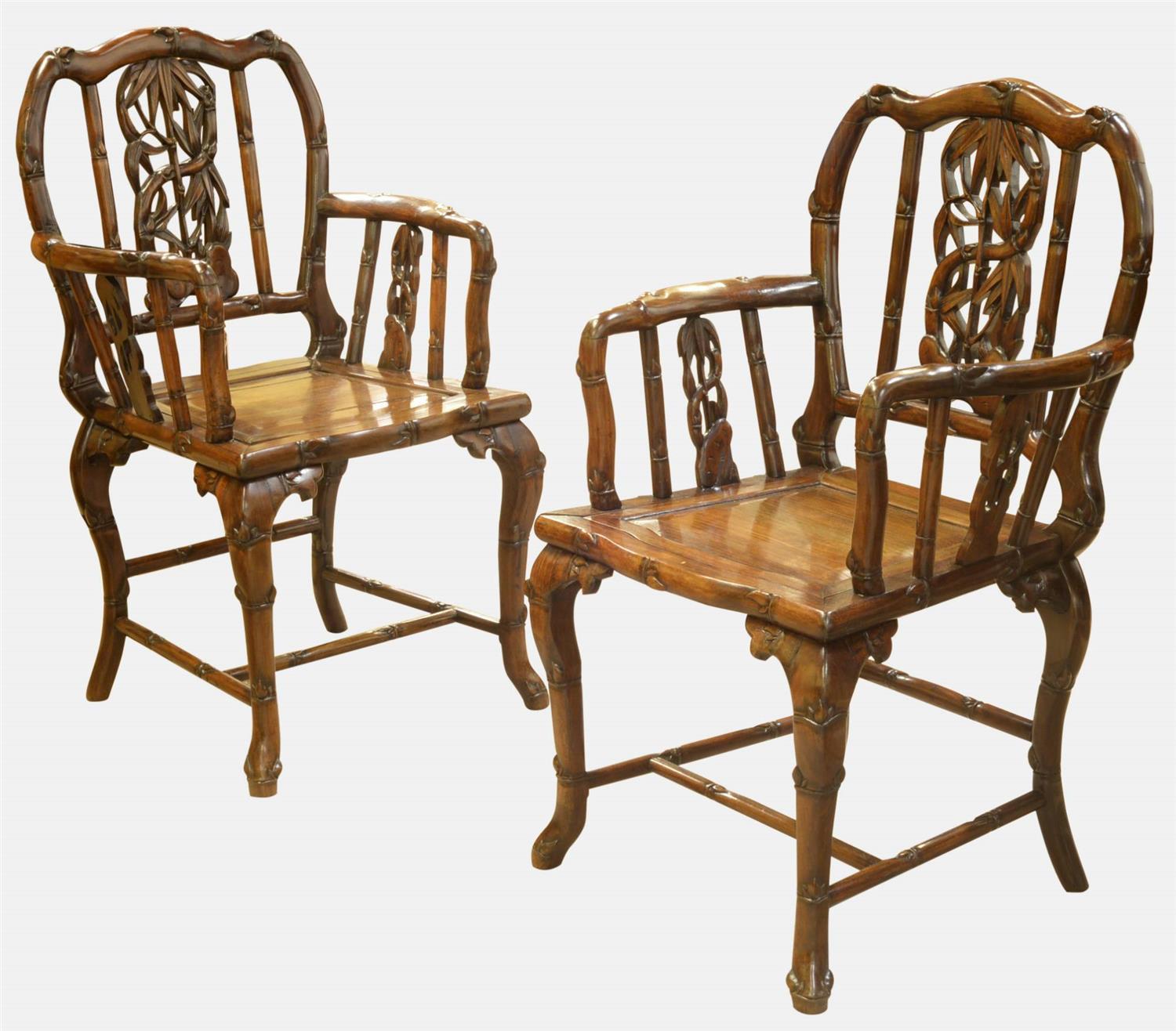 Pair of Chinese Faux Bamboo Rosewood Open Armchairs c.1890 (1 of 1)