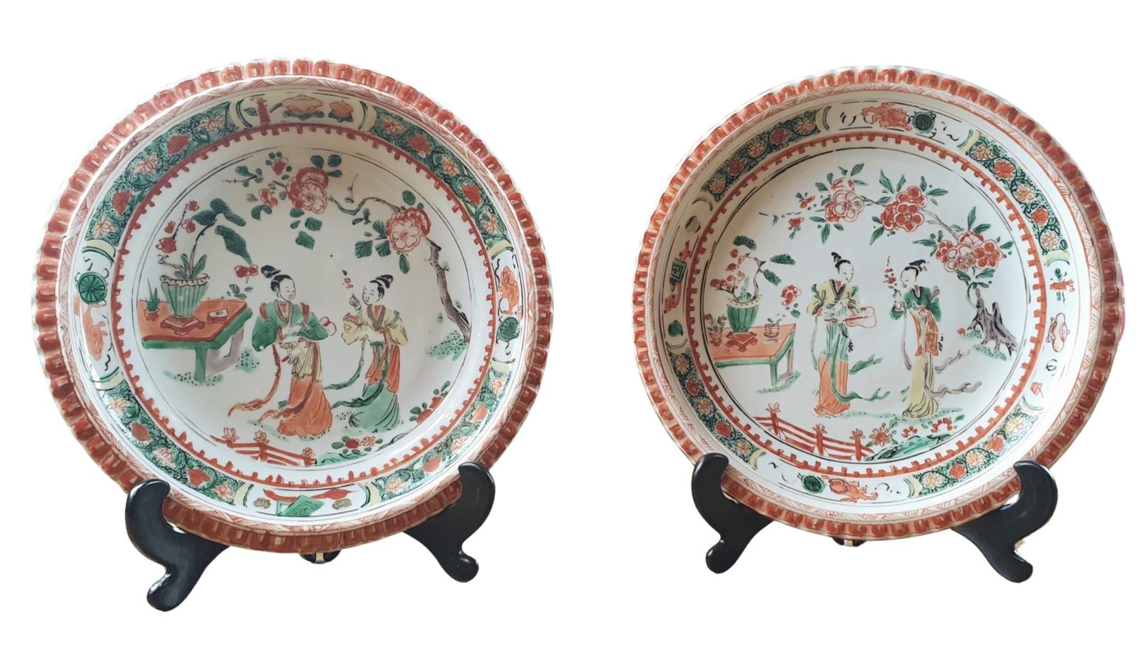 Pair of Chinese Kangxi (1661-1722) Famille Verte Pie Crust Plates