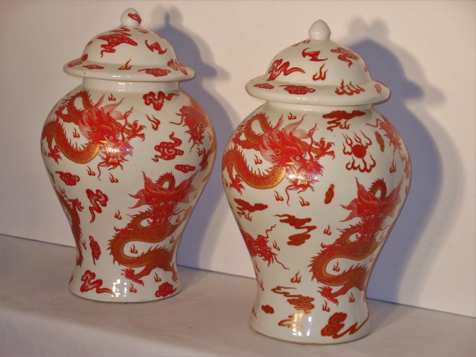 Pair of Chinese Porcelain Baluster Vases & Covers