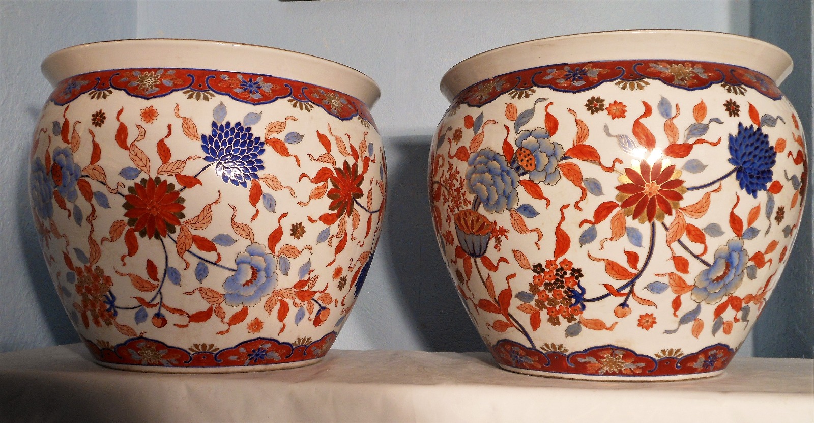 Pair of Chinese Rouge De Fer Fish Vase Bowls c.1870