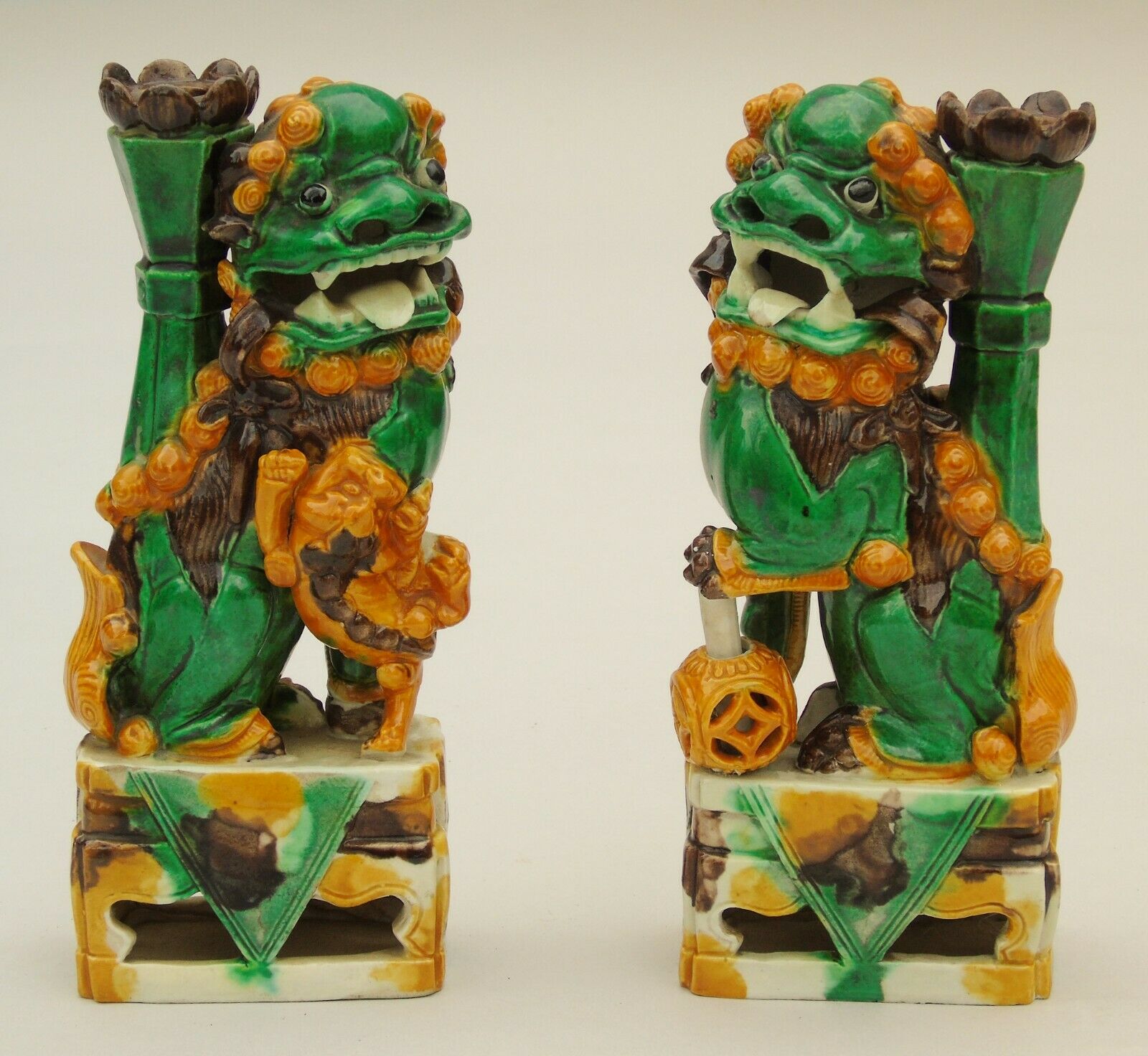 Pair of Chinese Tang Sancai Buddhist Lions c.1920 (1 of 7)