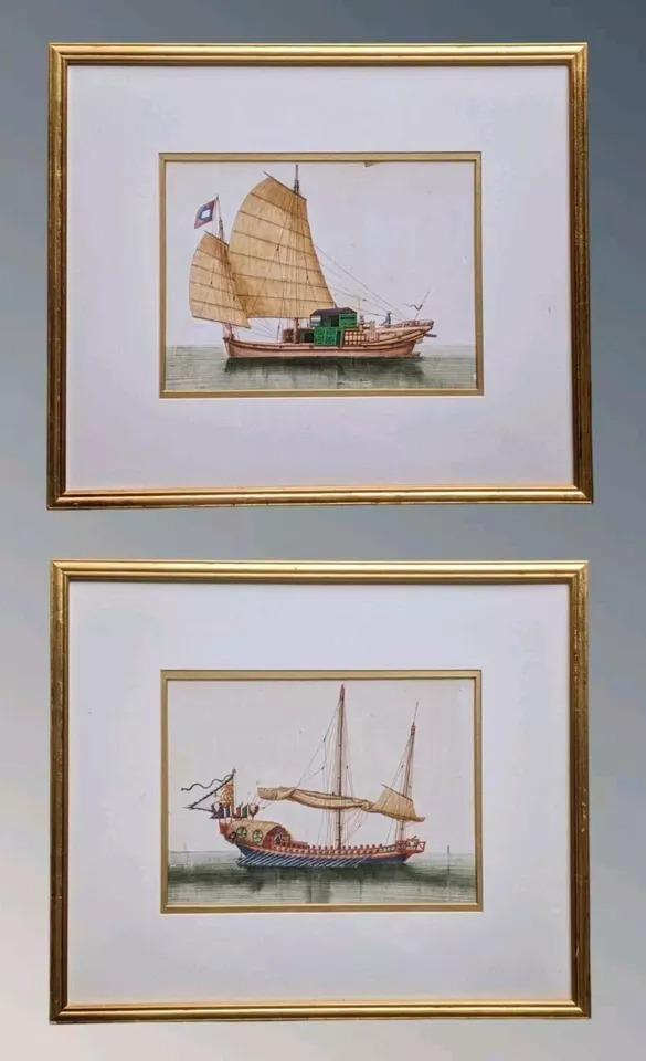 Pair of Chinese Watercolours Sailing Junks (1 of 13)