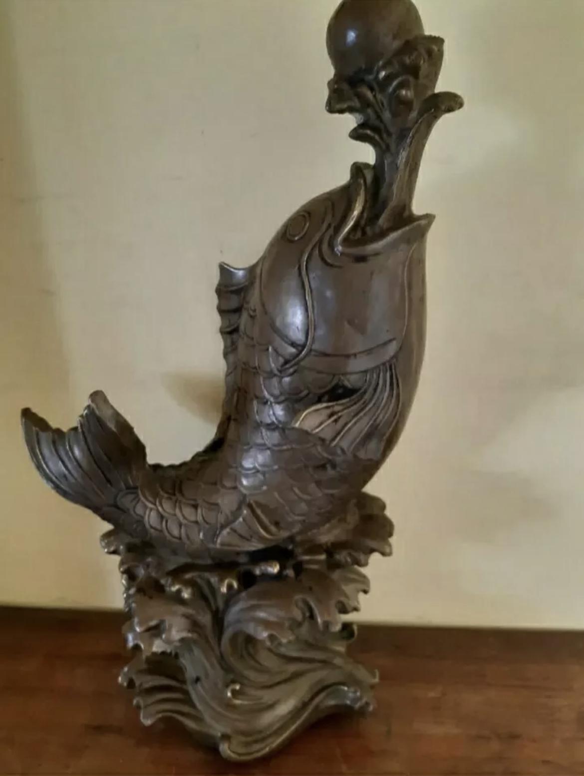Pair of Chinese "Wealth Increase" Bronzed Metal Fish Statues