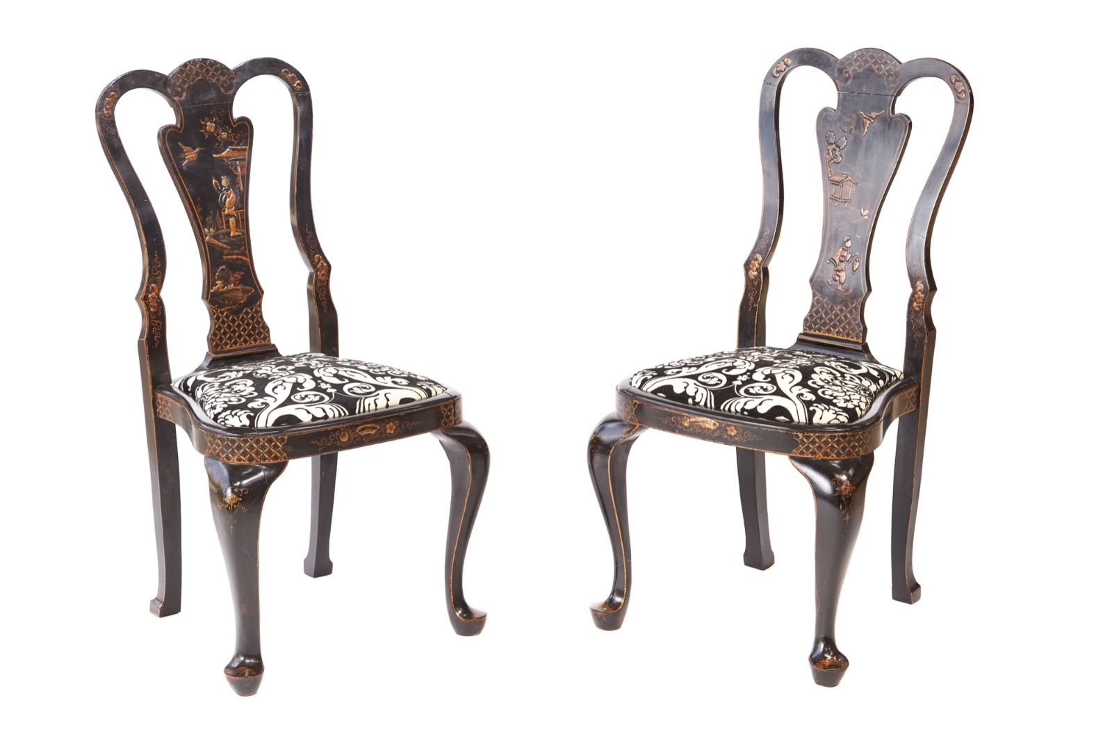 Pair of Chinoiserie Lacquered Decorated Side / Desk Chairs c.1900