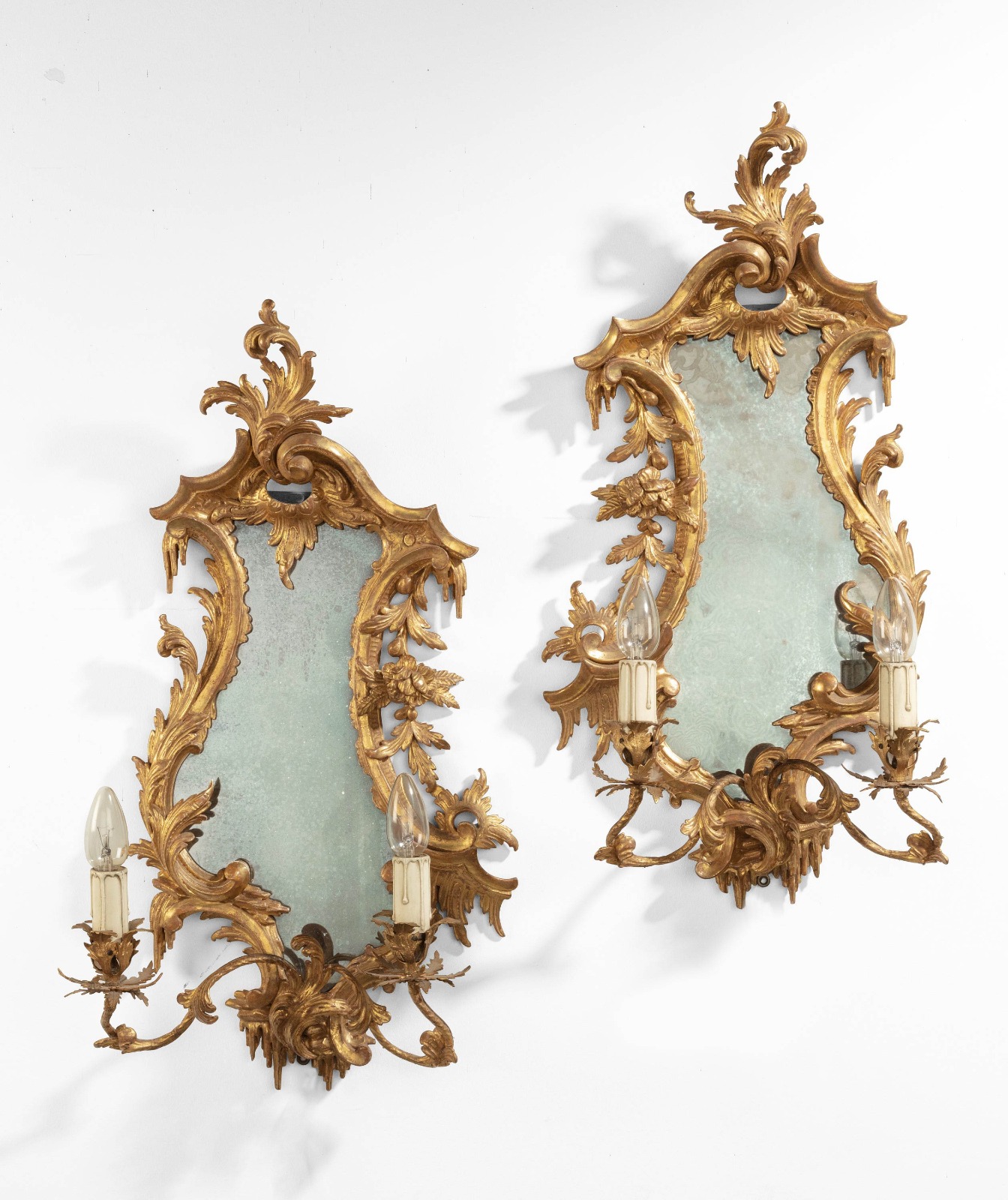 Pair of Chippendale Style Wall Bracket Mirrored Girandoles