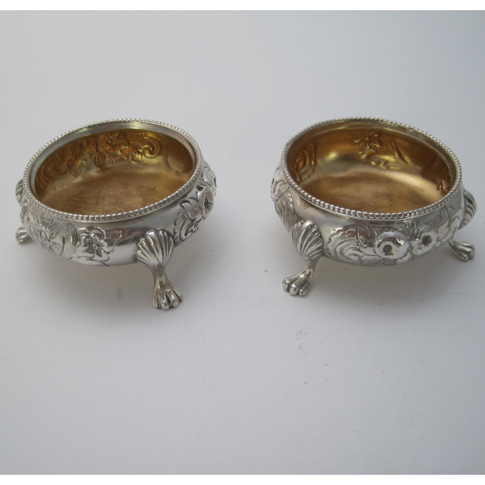Pair of Circular Victorian Gilt Lined Silver Salts (1 of 7)