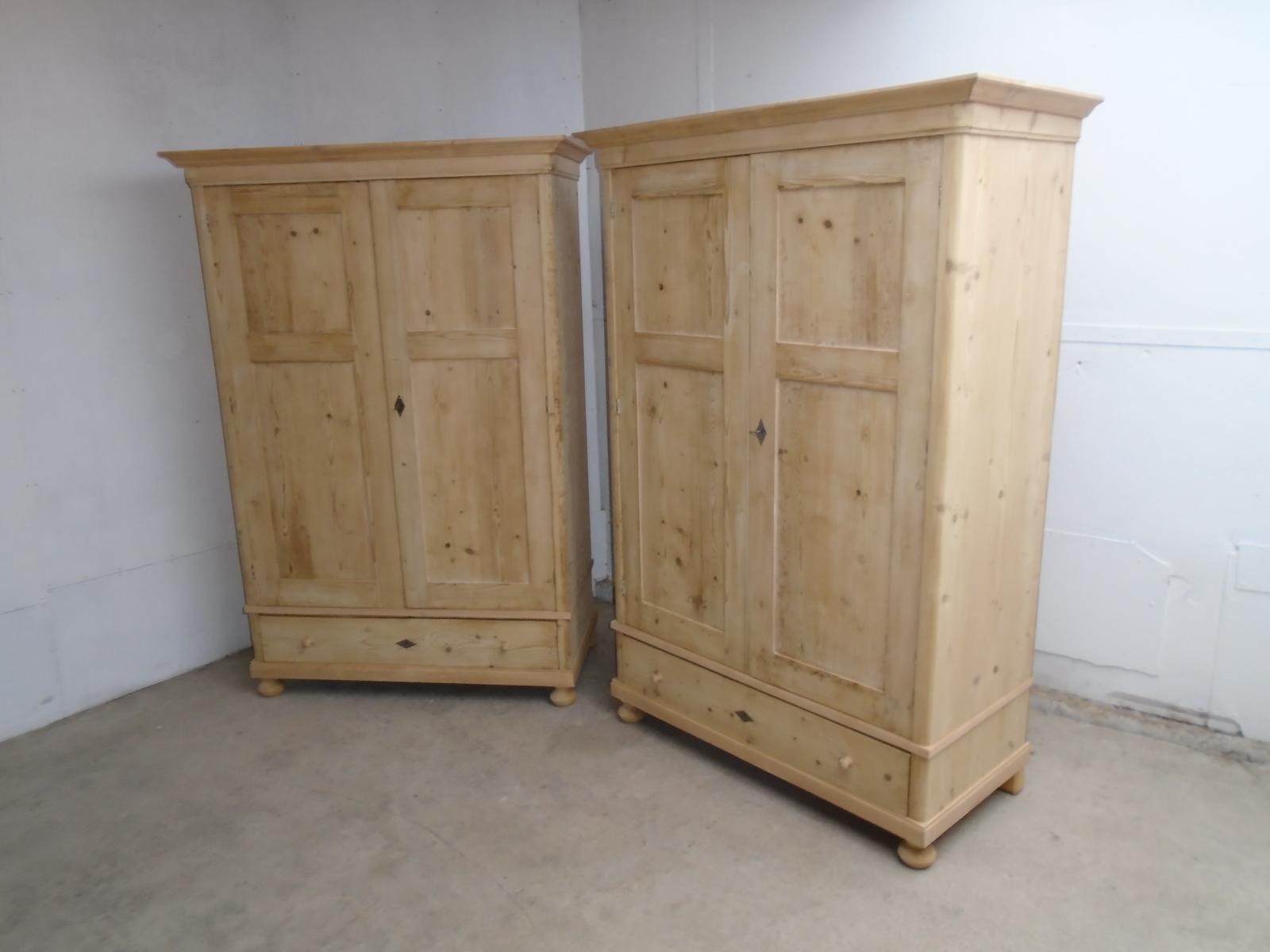 Pair of Classic 2 Panel Antique Pine Knockdown Wardrobes to wax / paint