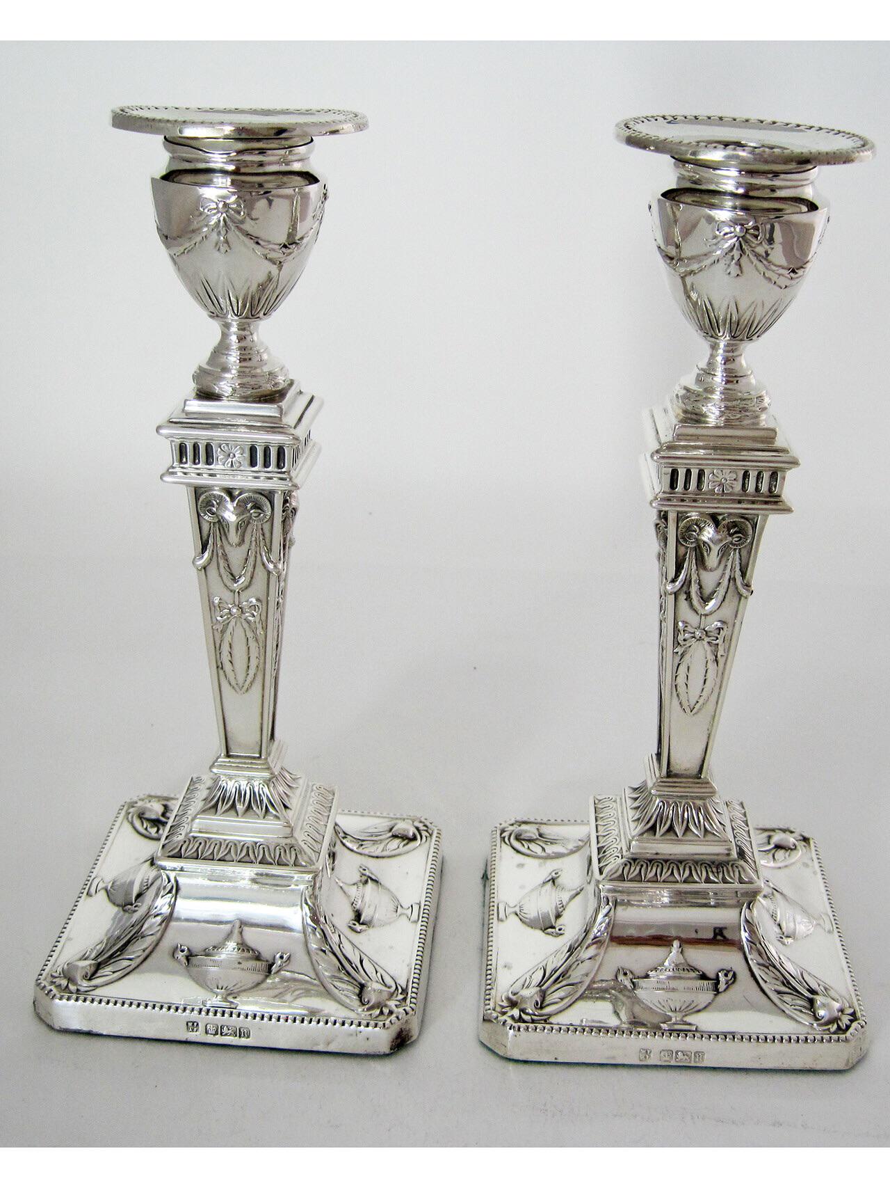 Pair of Classical Edwardian Adams Style Silver Candlesticks