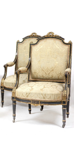 Pair of Continental Beechwood Framed Fauteuil Chairs