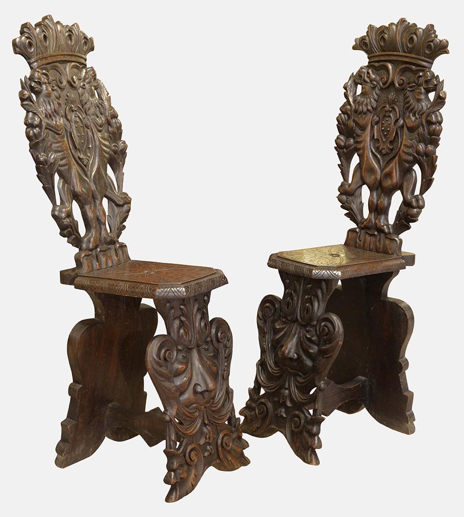 Pair of Continental Carved Oak Hall Chairs c.1860