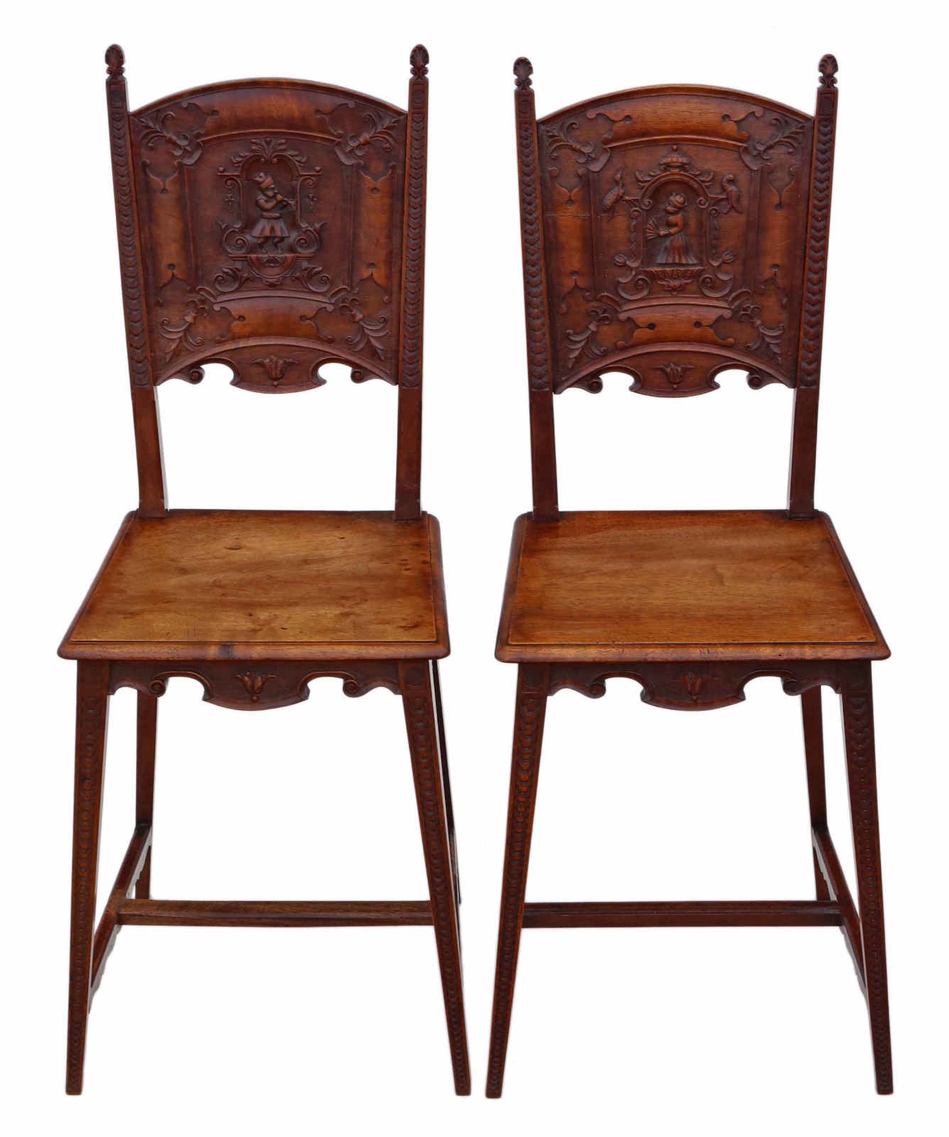 Pair of Continental Carved Walnut Hall Chairs c.1900