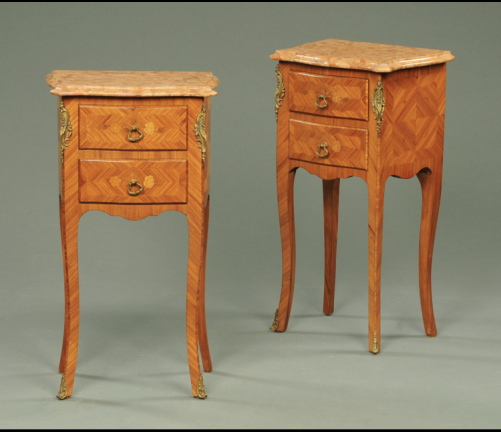 Pair of Continental Marquetry & Parquetry Walnut Bedside Cabinets