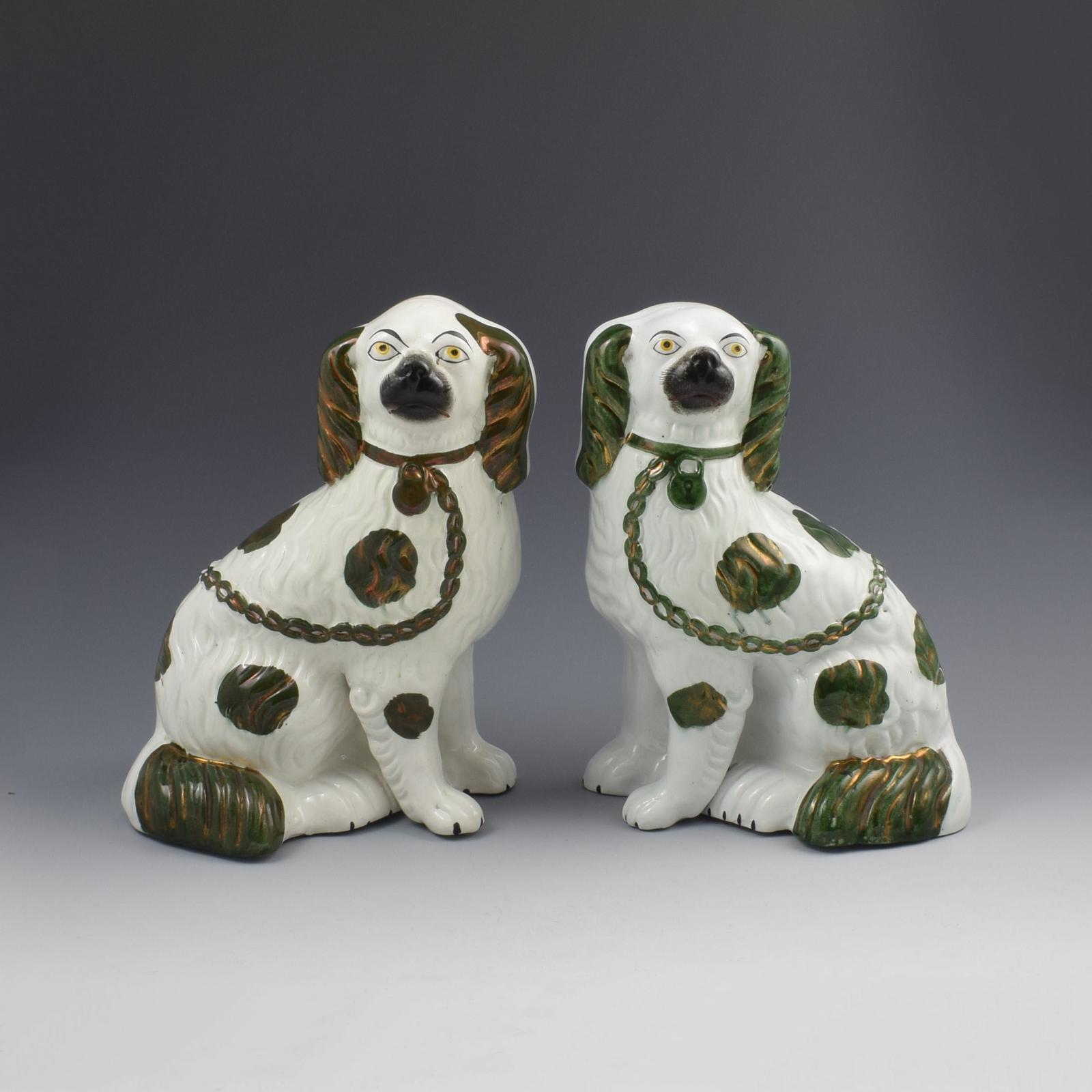 Pair of Copper Lustre Staffordshire Spaniel Dogs c.1890