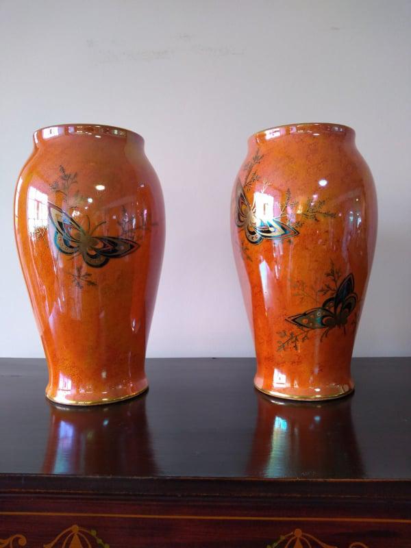 Pair of Crown Devon Lustre 'summer' Pattern Art Deco Vases