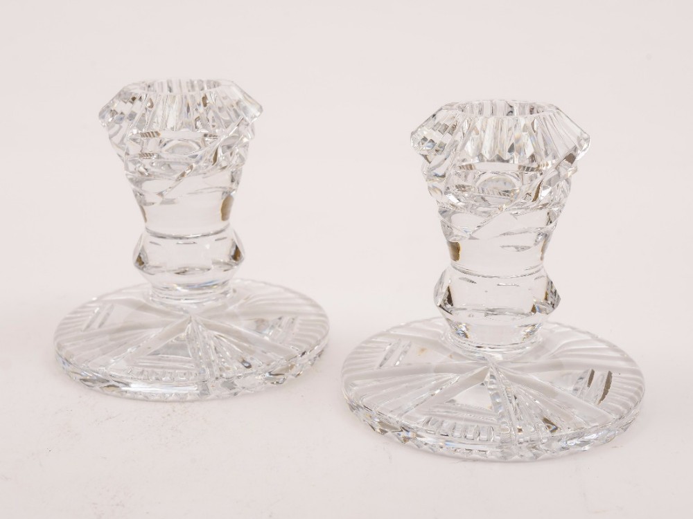 Pair of Cut Crystal Low Candlesticks Holders C.1920