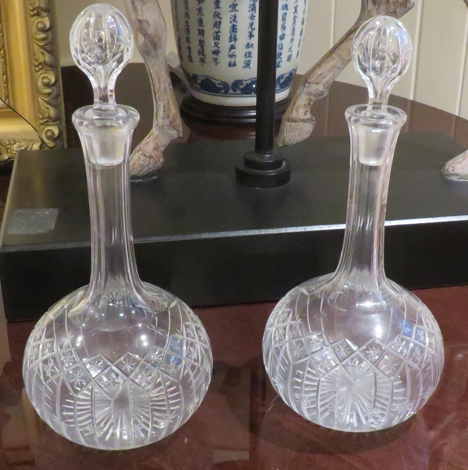 This Pair of Cut Glass Globe Decanters is located in West Sussex, United Kingdom