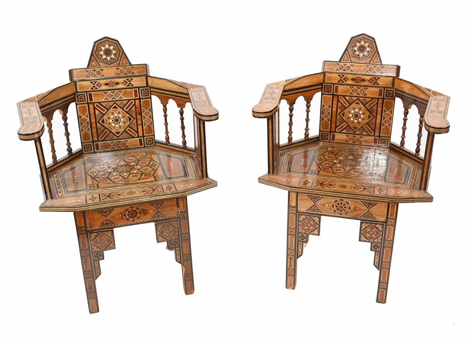 Pair of Damascan Chairs Inlay Arabic Syrian Interiors c.1920