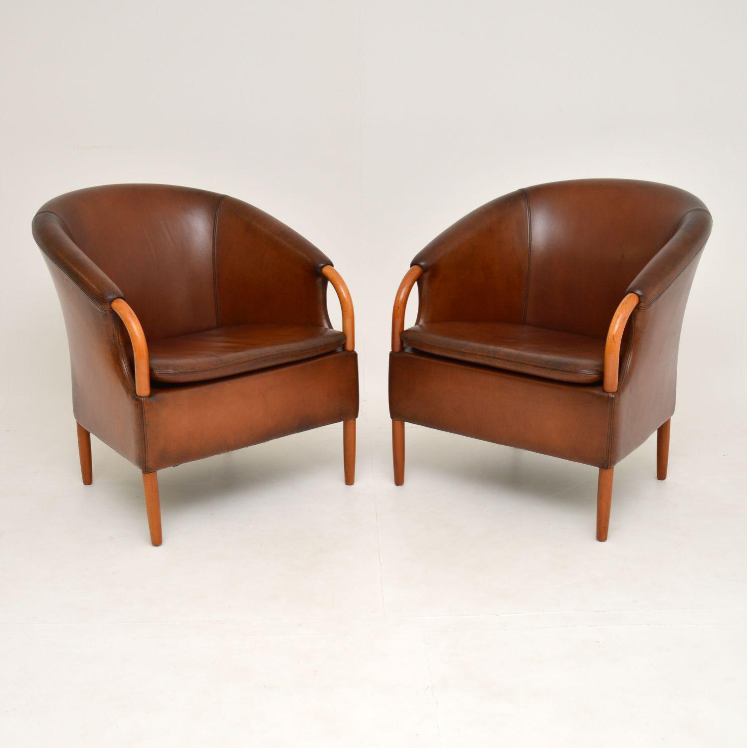 Pair of Danish Vintage Leather Armchairs by Mogens Hansen