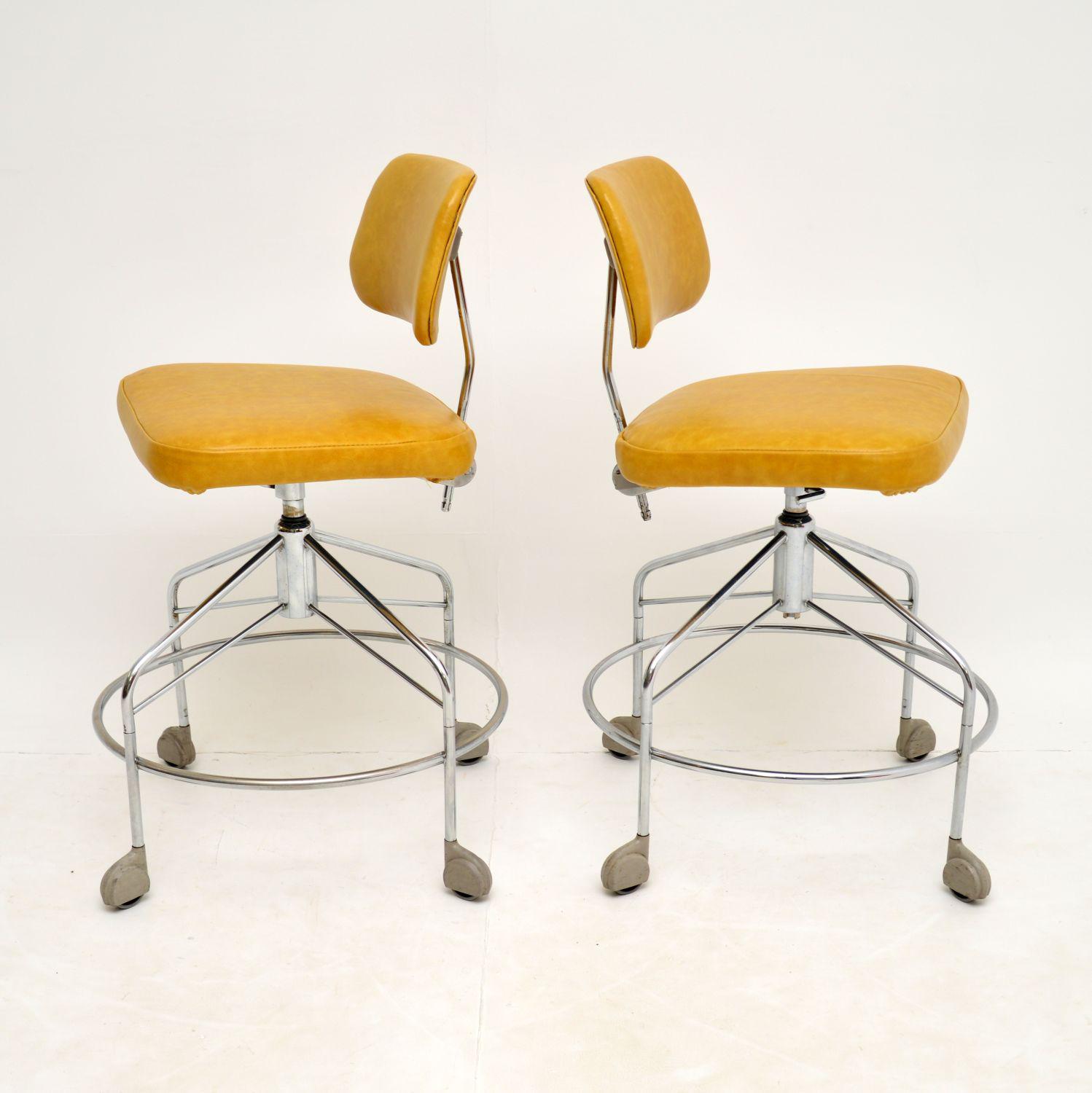 Pair of Danish Vintage Leather Swivel Draughtsman Chairs by Danflex