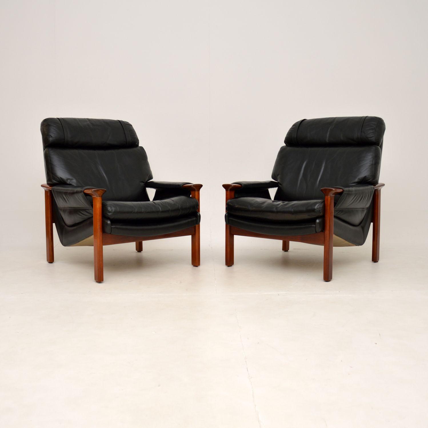 Pair of Danish Vintage Rosewood & Leather Armchairs