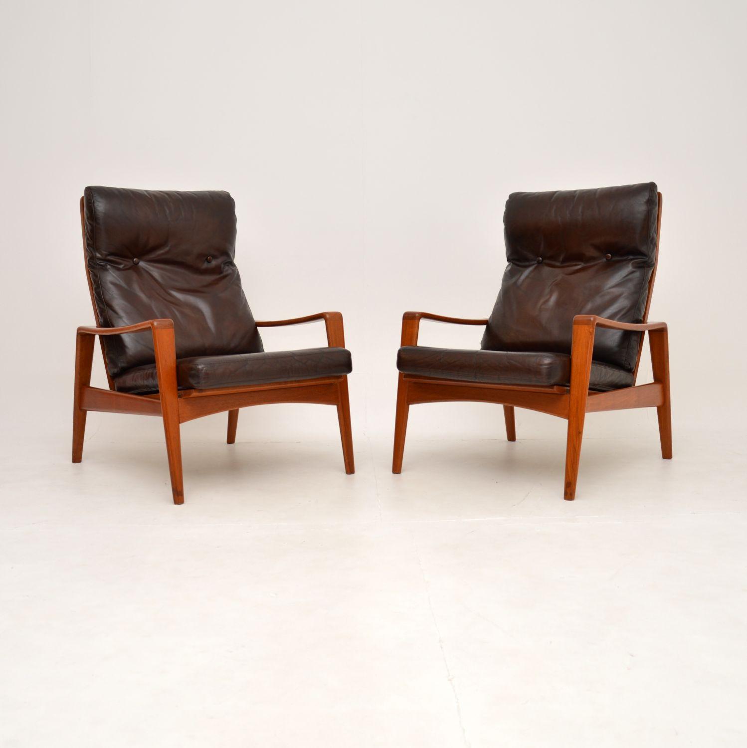 Pair of Danish Vintage Teak & Leather Armchairs by Arne Wahl Iversen