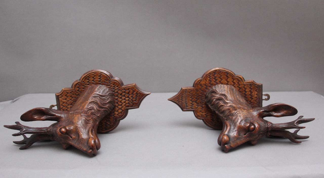 Pair of Decorative 19th Century Carved Walnut Black Forest Deer Heads