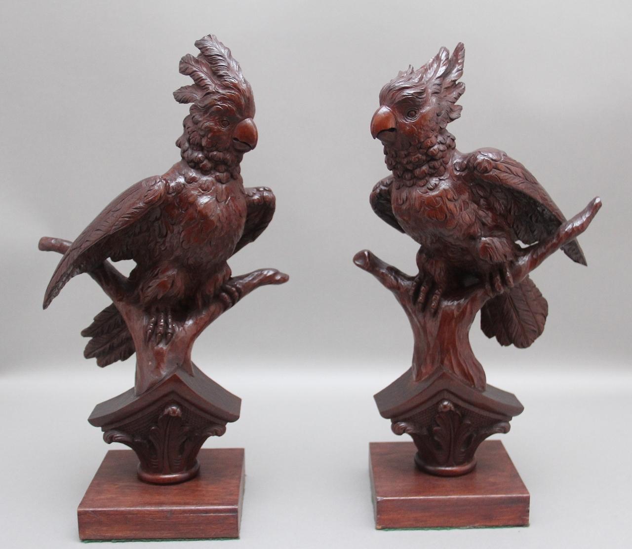 Pair of Decorative 19th Century Carved Walnut Parakeets