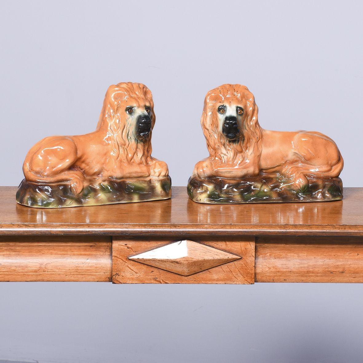 Pair of Decorative Bo’ness Pottery Recumbent Lions (1 of 4)