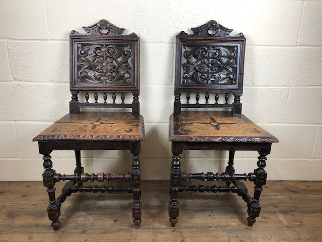 Pair of Decorative Carved Oak Hall Chairs (1 of 10)