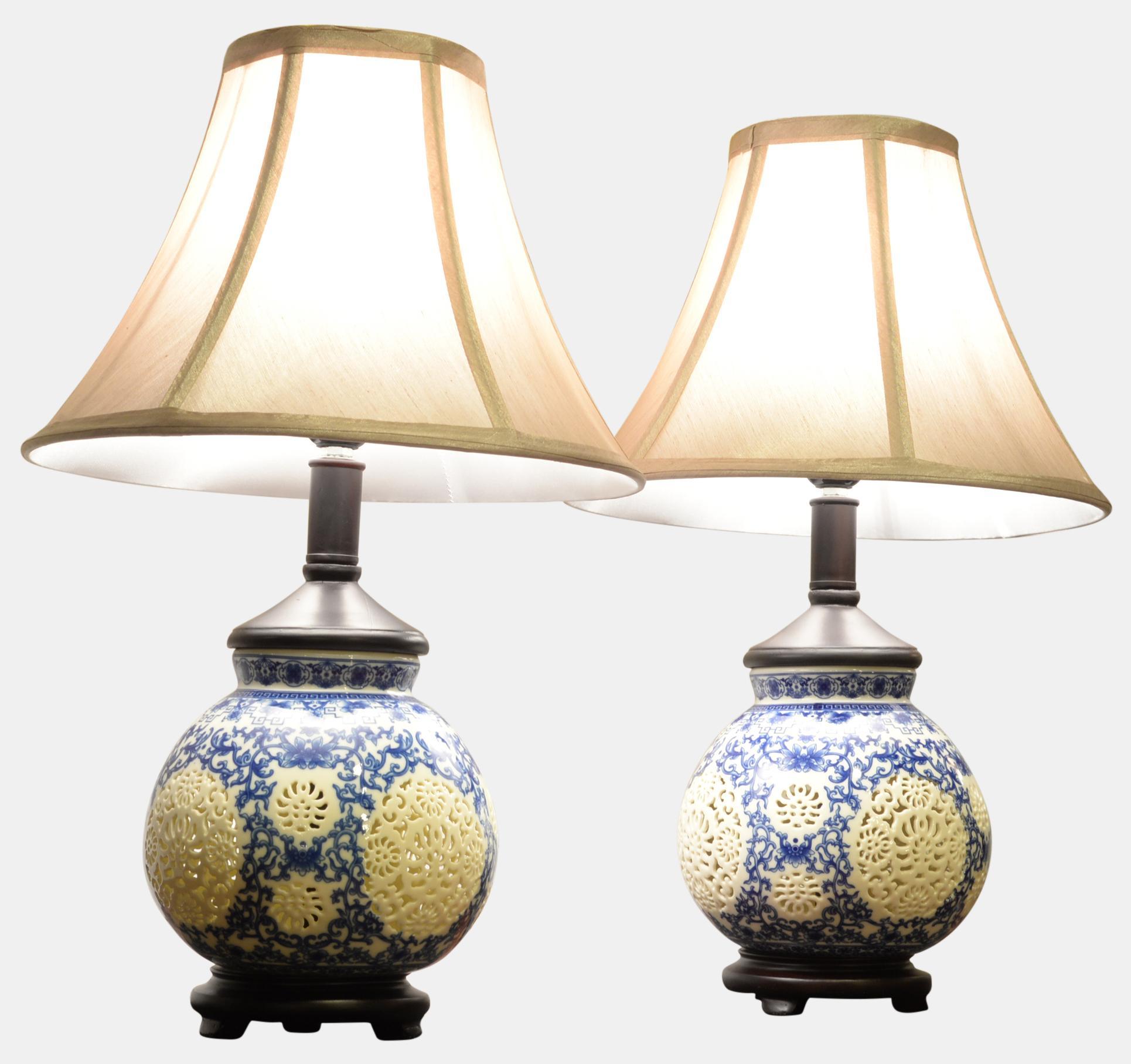 Pair of Decorative Ceramic Oriental Style Lamps