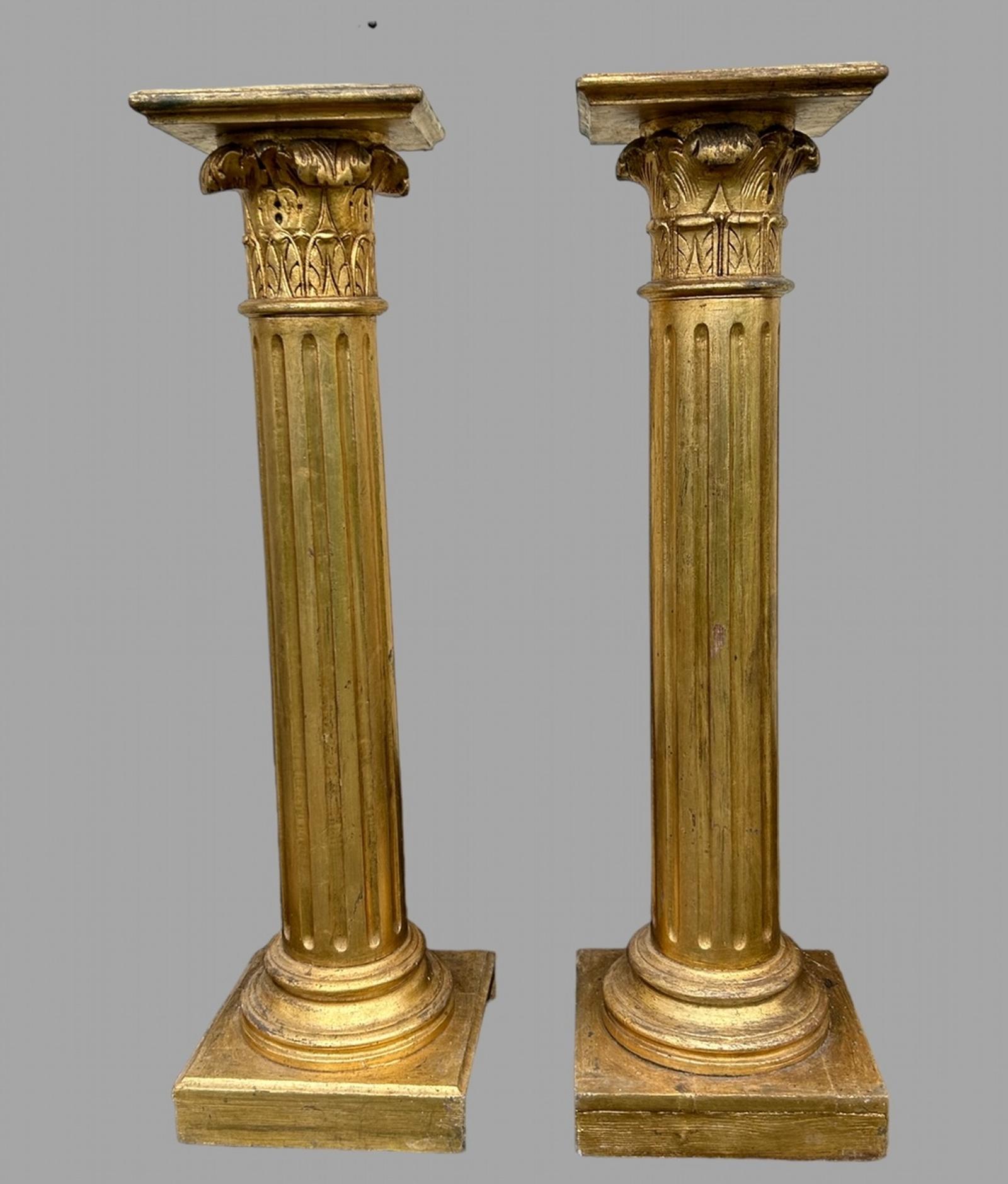 Pair of Decorative Wood Gilded Columns / Pedestals