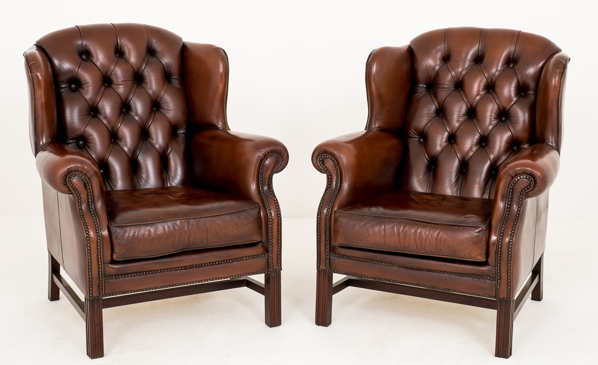 Pair of Deep Buttoned Leather Wing Chairs c.1920