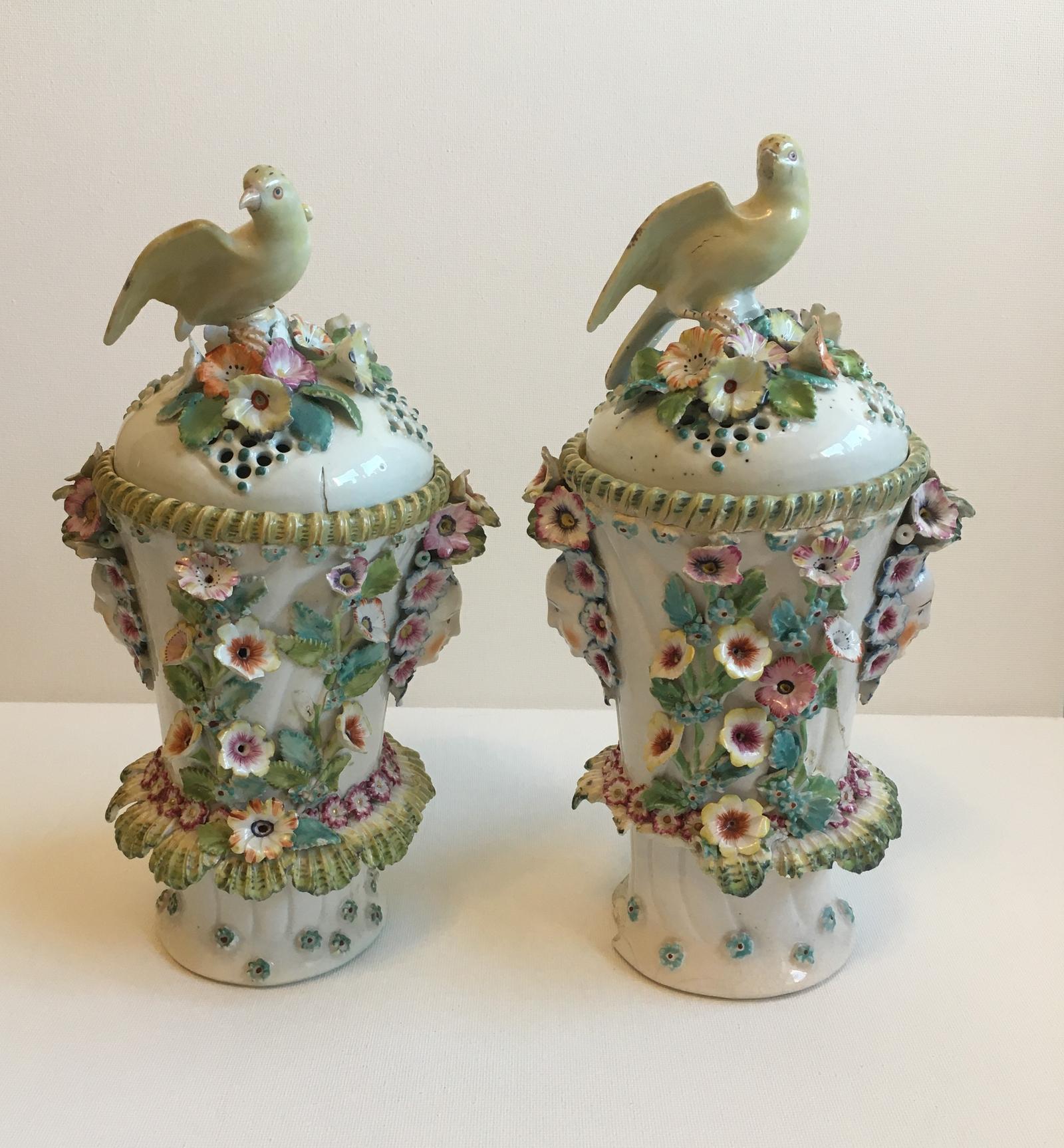Pair of Derby Porcelain 'Frill' Vases & Covers