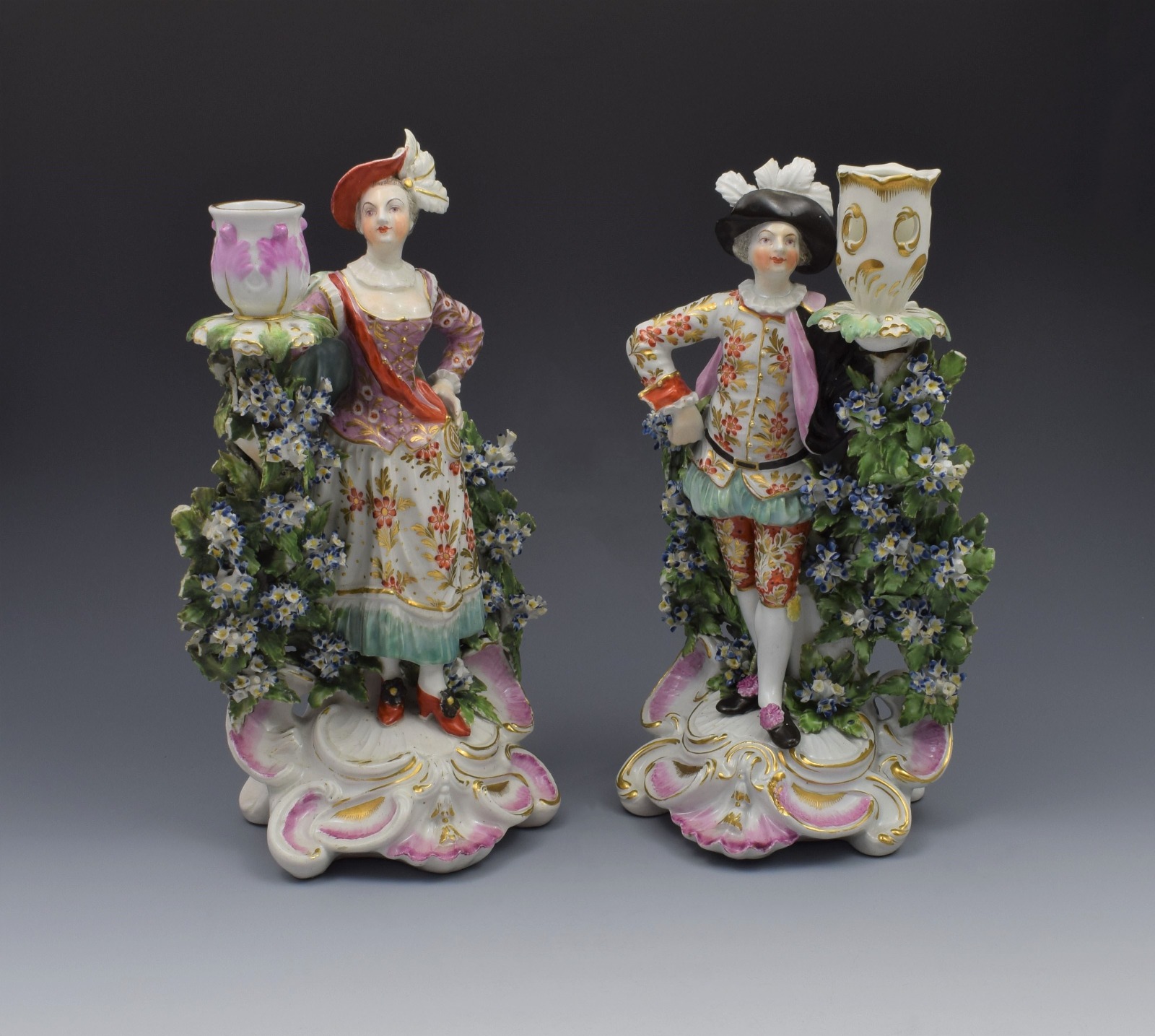 Pair of Derby Porcelain Ranelagh Dancers Figural Candlesticks c.1765