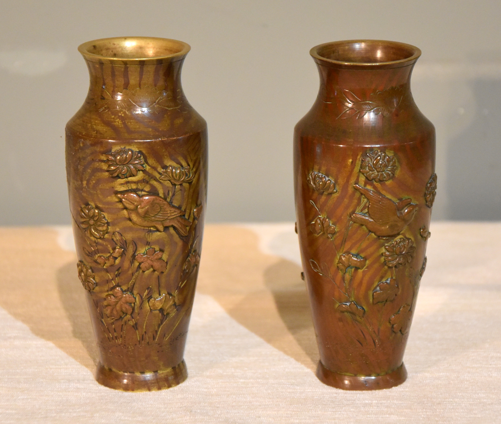 Pair of Diminutive Patinated Bronze Vases c.1860