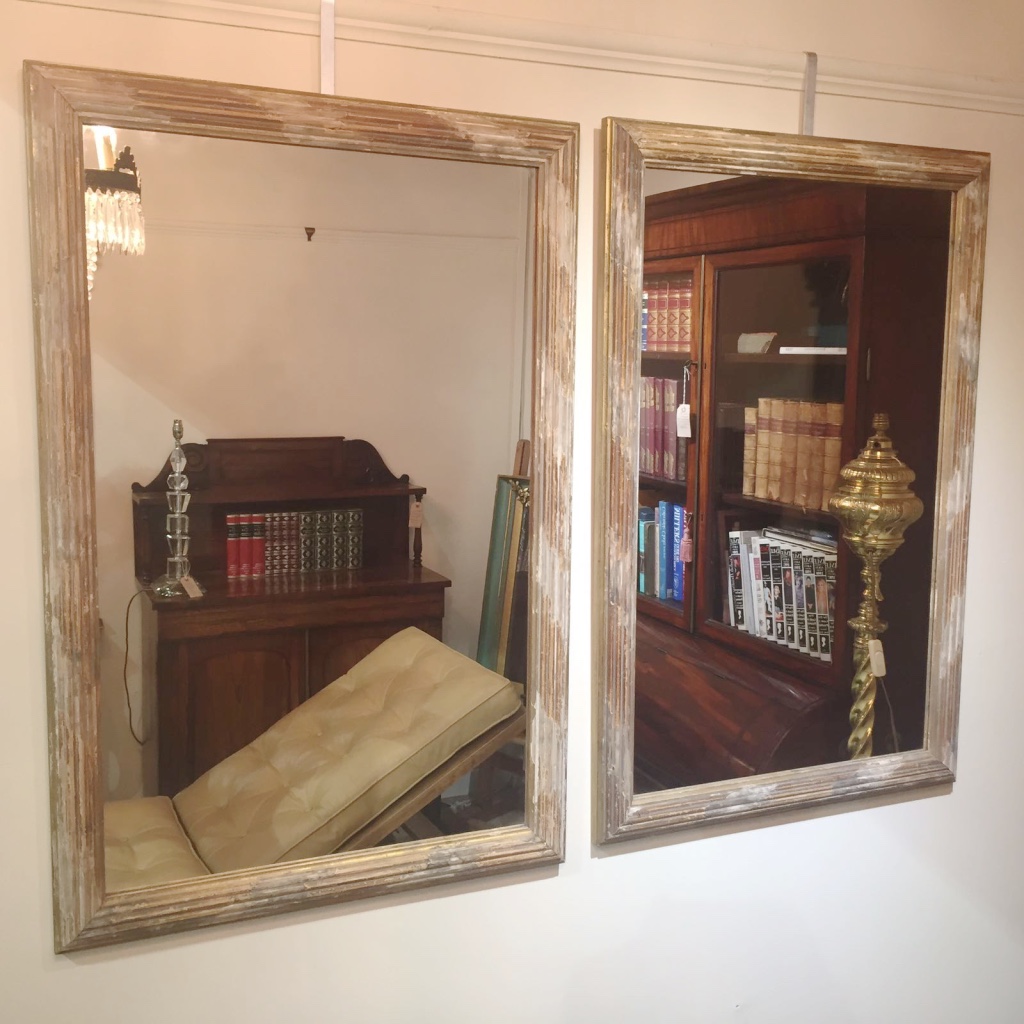 Pair of distress paint and gilt mirrors (1 of 1)