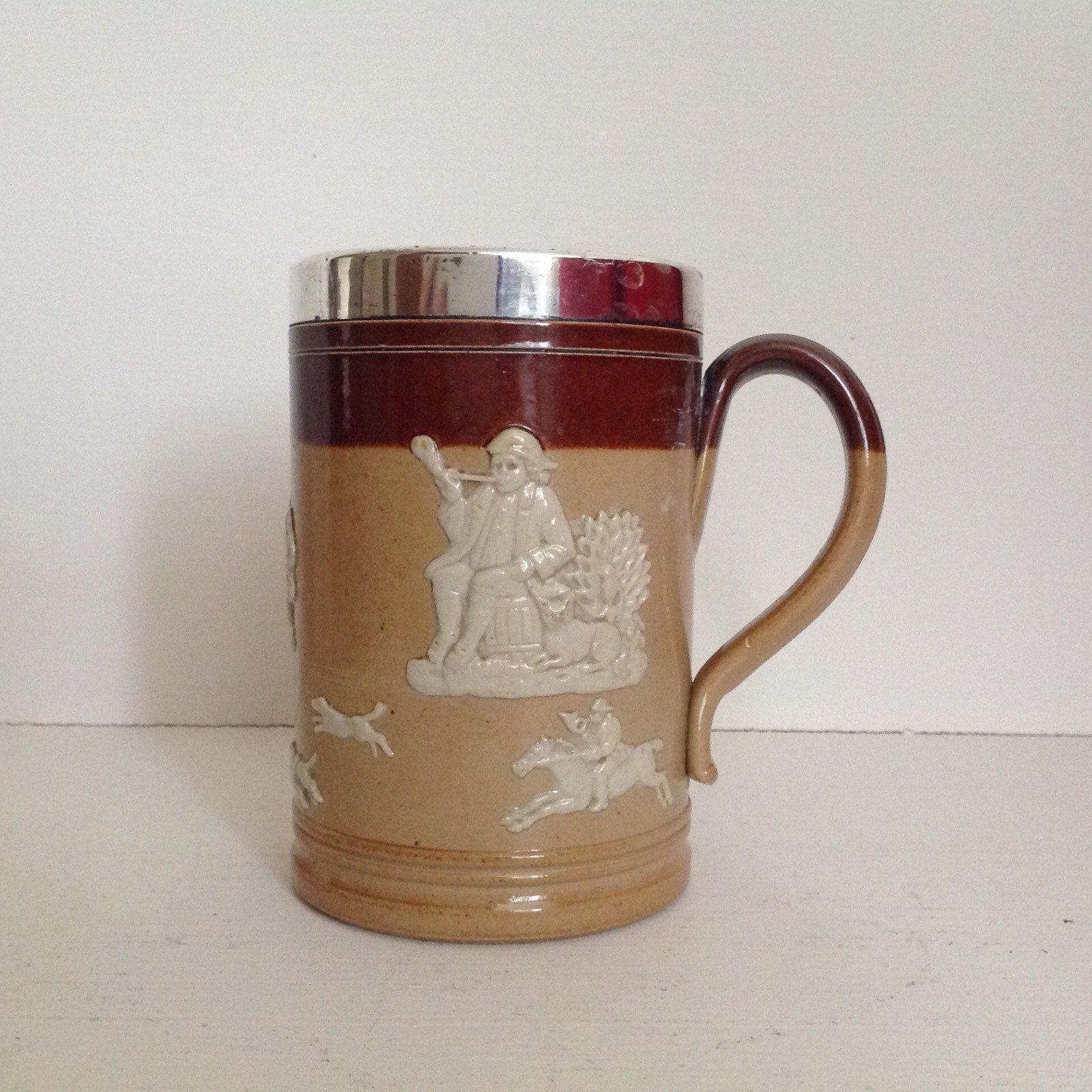 Pair of Doulton Lambeth Silver Rim Hunting Tankard