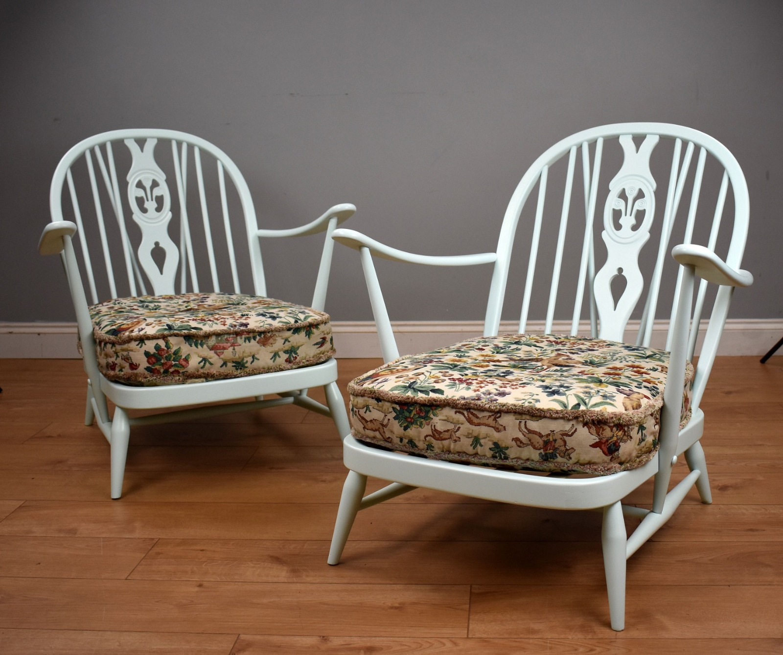 Pair of Duck Egg Blue Ercol Armchairs