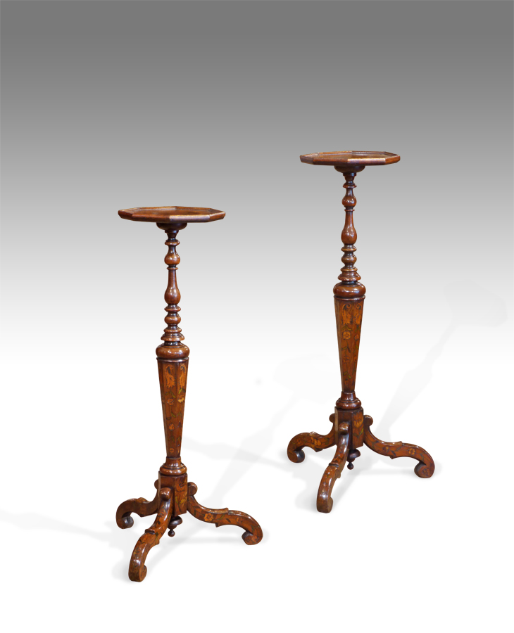 Pair of Dutch Marquetry Candle Stands c.1860