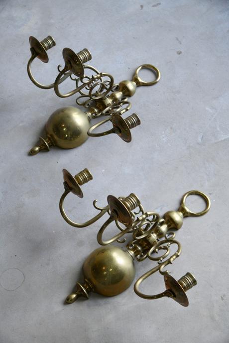 Pair of Dutch Style Brass 3 Branch Wall Candle Sconce