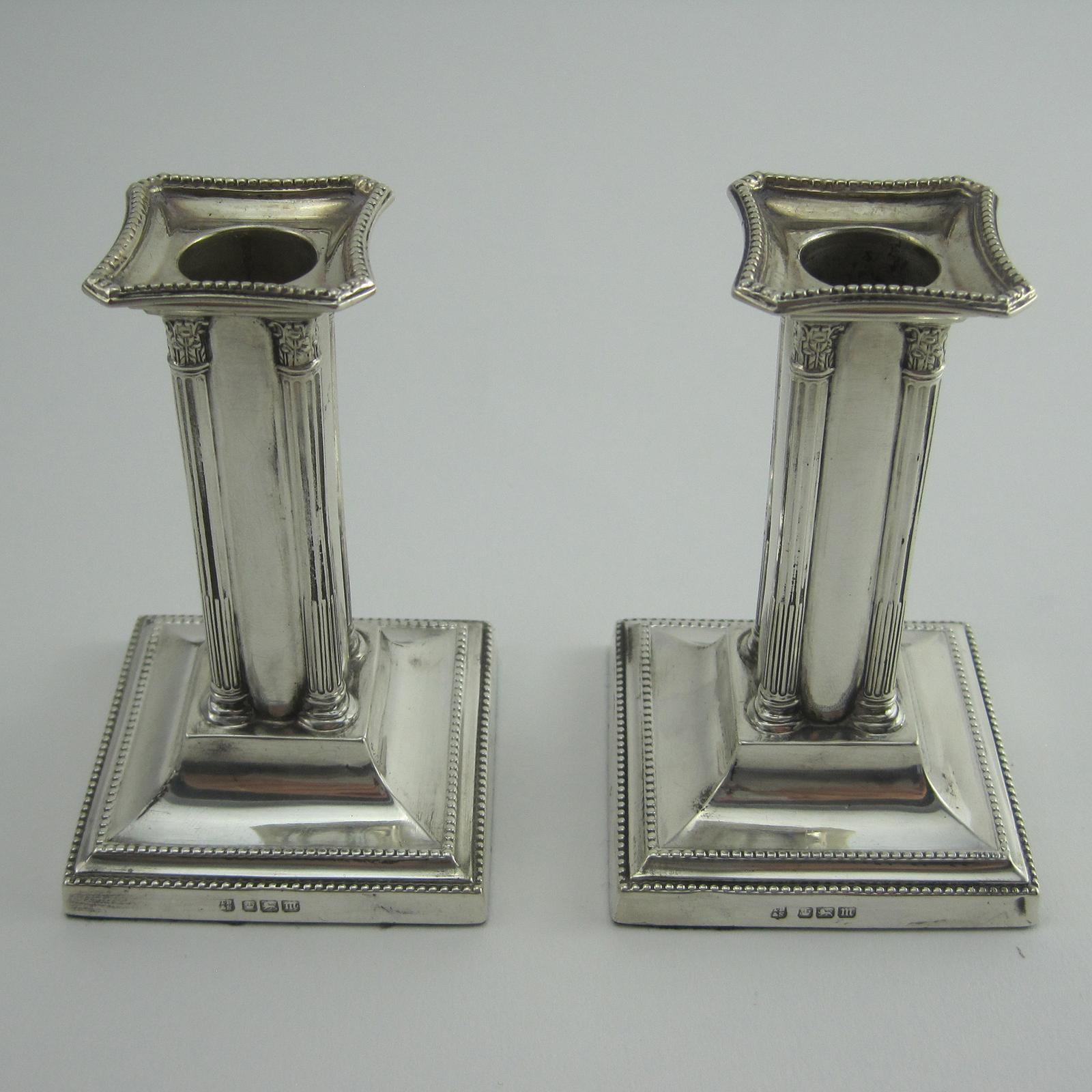 Pair of Dwarf Style Sterling Silver Candle Sticks