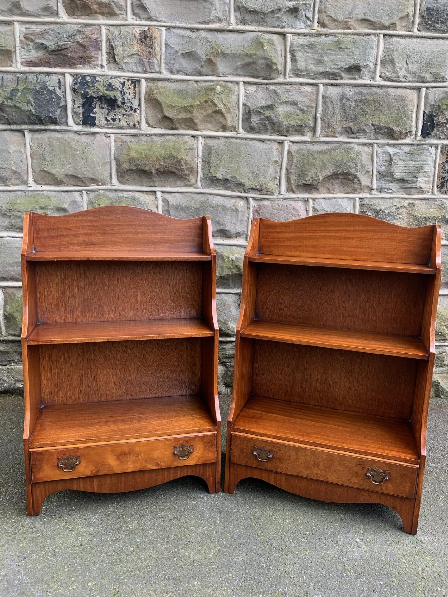 Pair of Dwarf Walnut Waterfall Open Bookcases Bookshelves