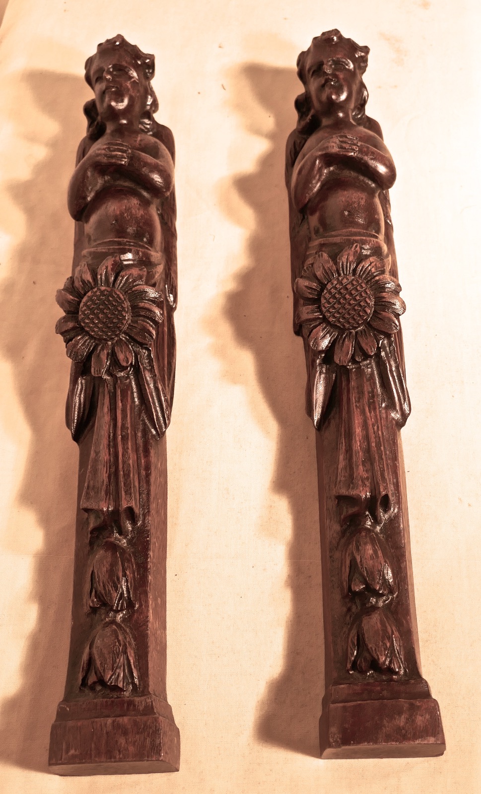 Pair of Early 19th Century Carved Walnut Caryatid Winged Angels