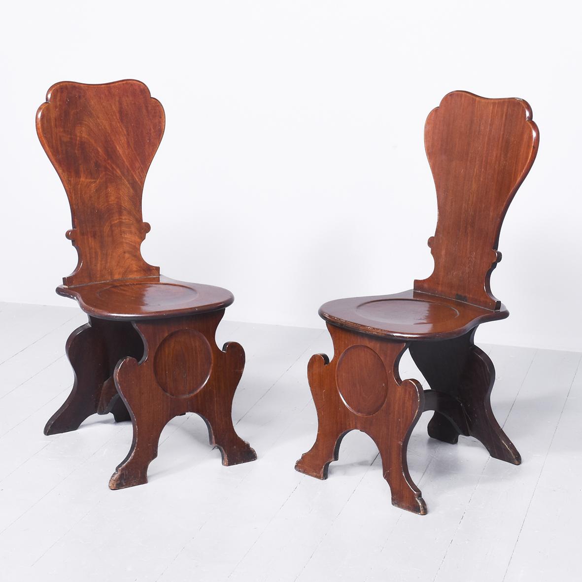 Pair of Early 19th Century Italian Renaissance Sgabello Hall Chairs