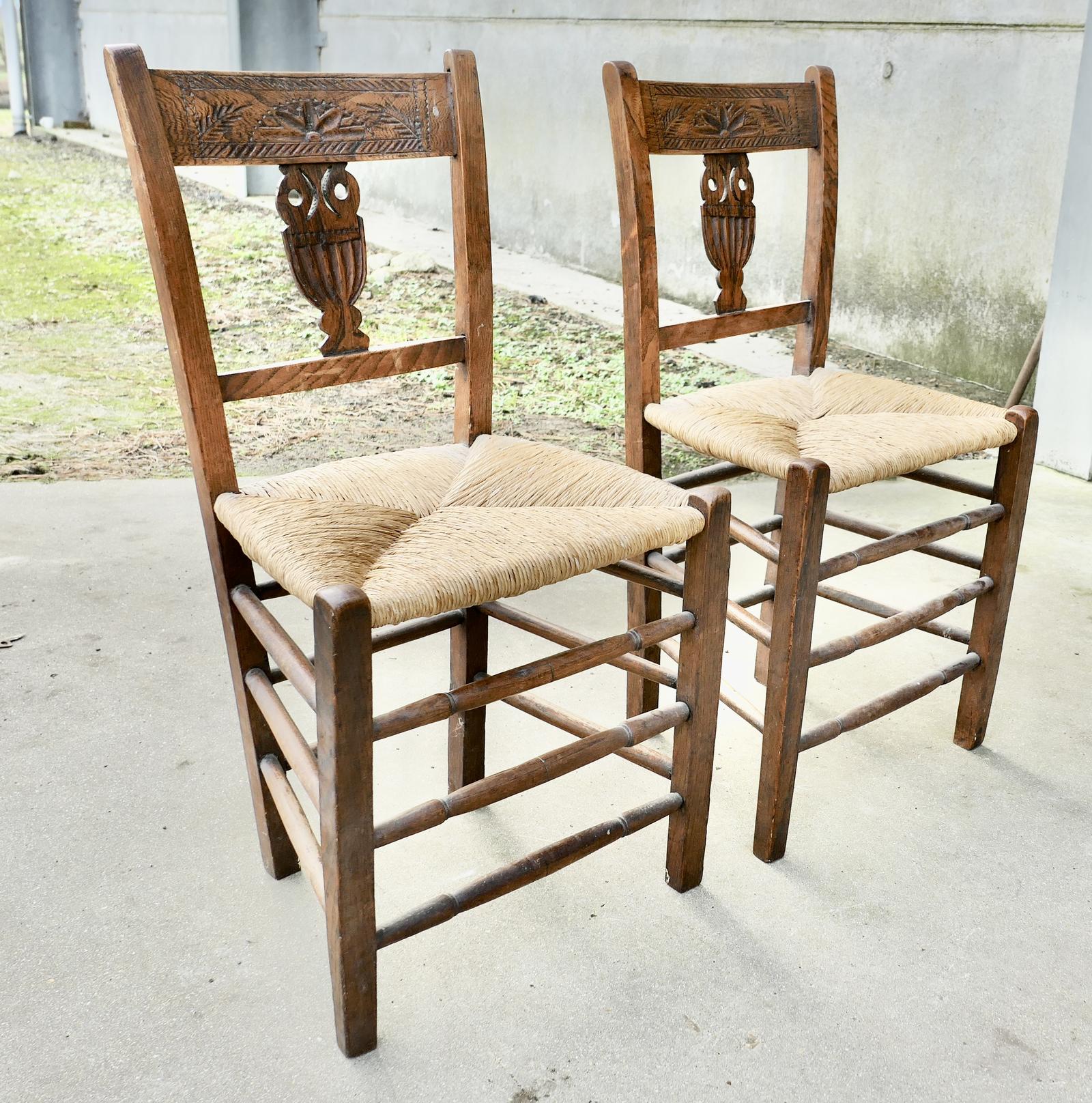 Pair of Early 19th Century Rush Seated Elm Hall Chairs