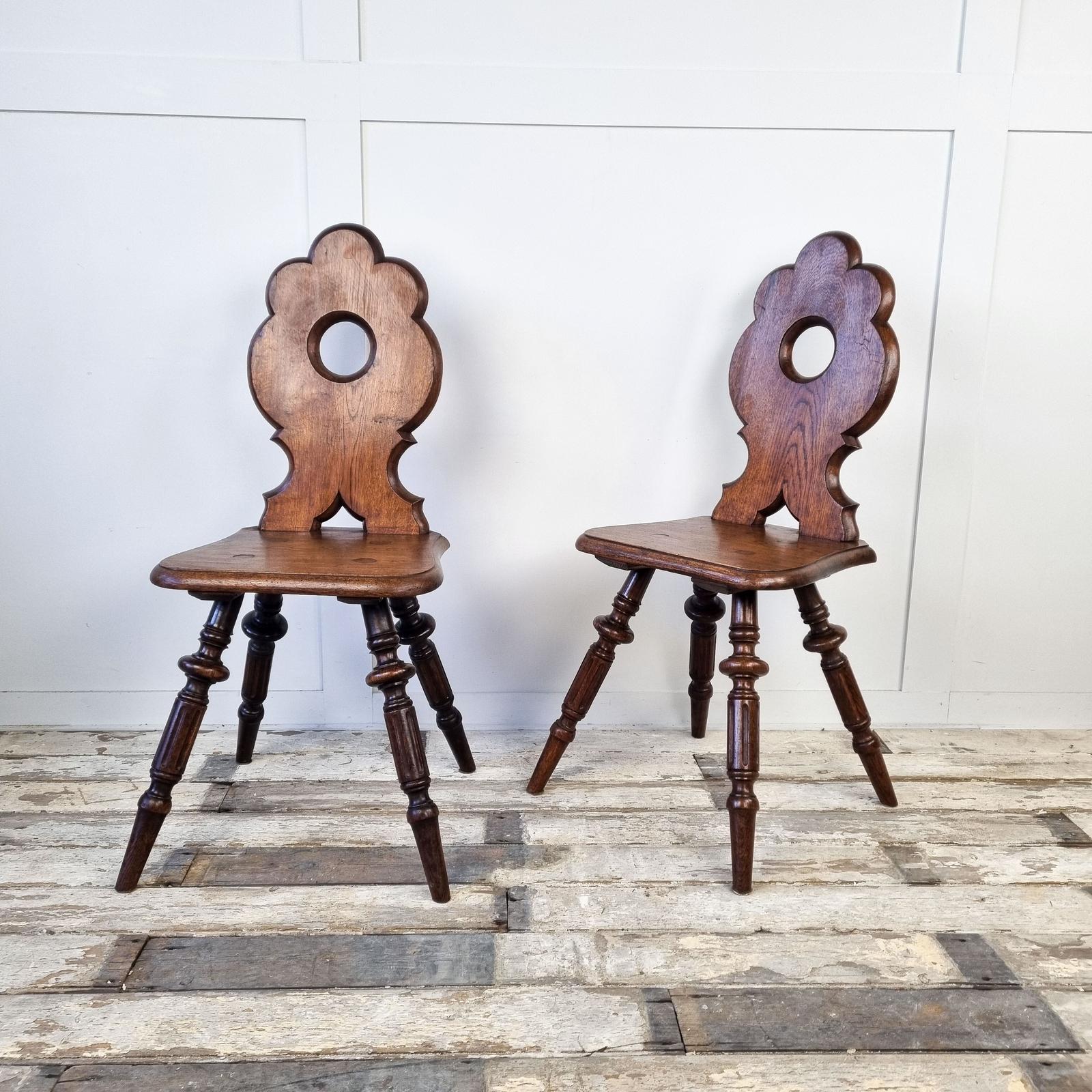 Pair of Early 20th Century Antique Oak Hall Chairs