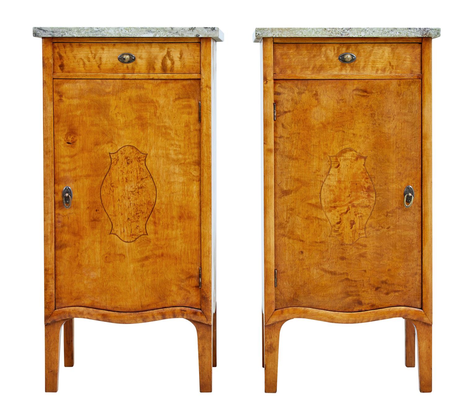 Pair of Early 20th Century Birch Art Nouveau Bedside Cupboards c.1910
