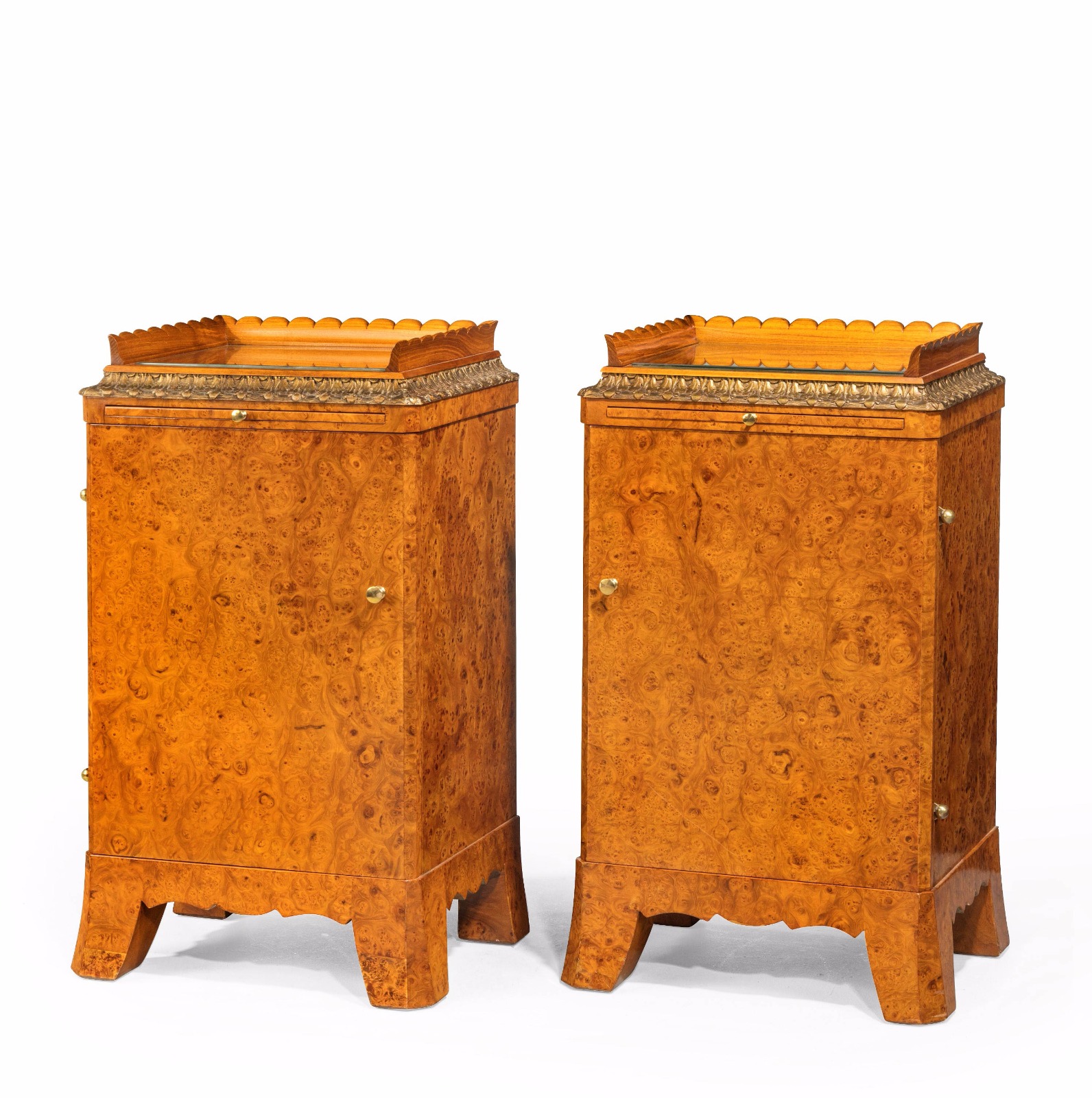 Pair of Early 20th Century Burr Amboyna Cupboards Incorporating a Slide
